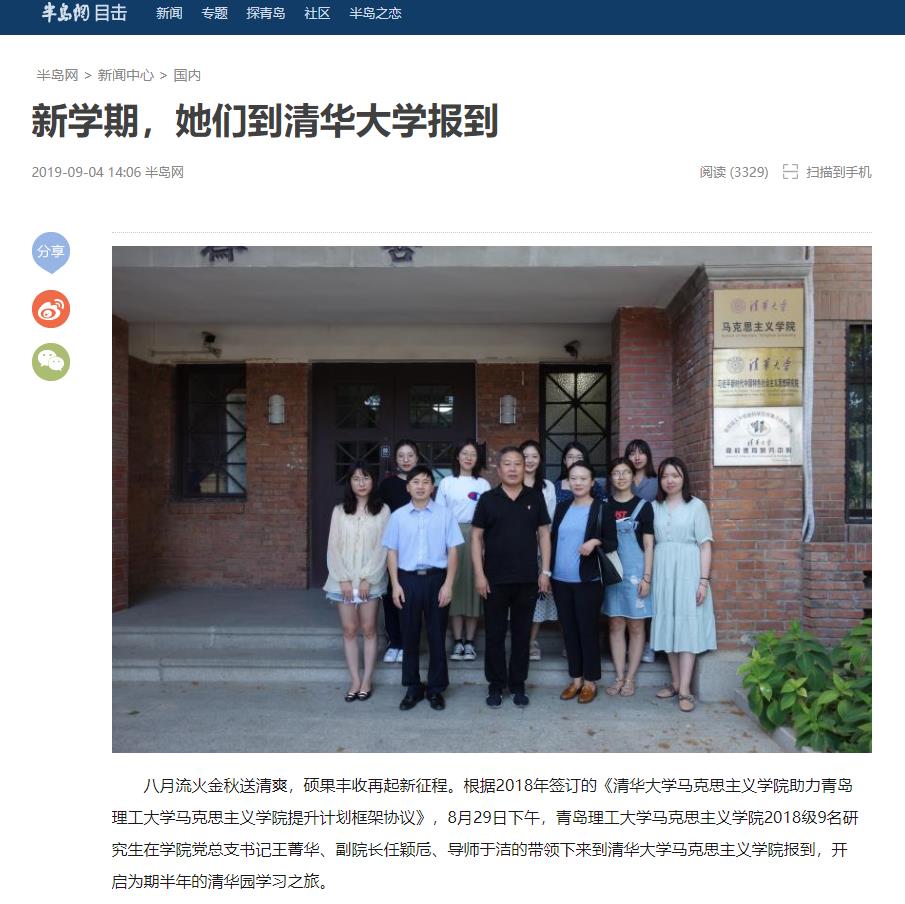 八月流火金秋送清爽,硕果丰收再起新征程。根据2018年签订的《清华大学马克思主义学院助力365完美体育马克思主义学院提升计划框架协议》,8月29日下午,365完美体育马克思主义学院2018级9名研究生在学院党总支书记王菁华、副院长任颖卮、导师于洁的带领下来到清华大学马克思主义学院报到,开启为期半年的清华园学习之旅。
