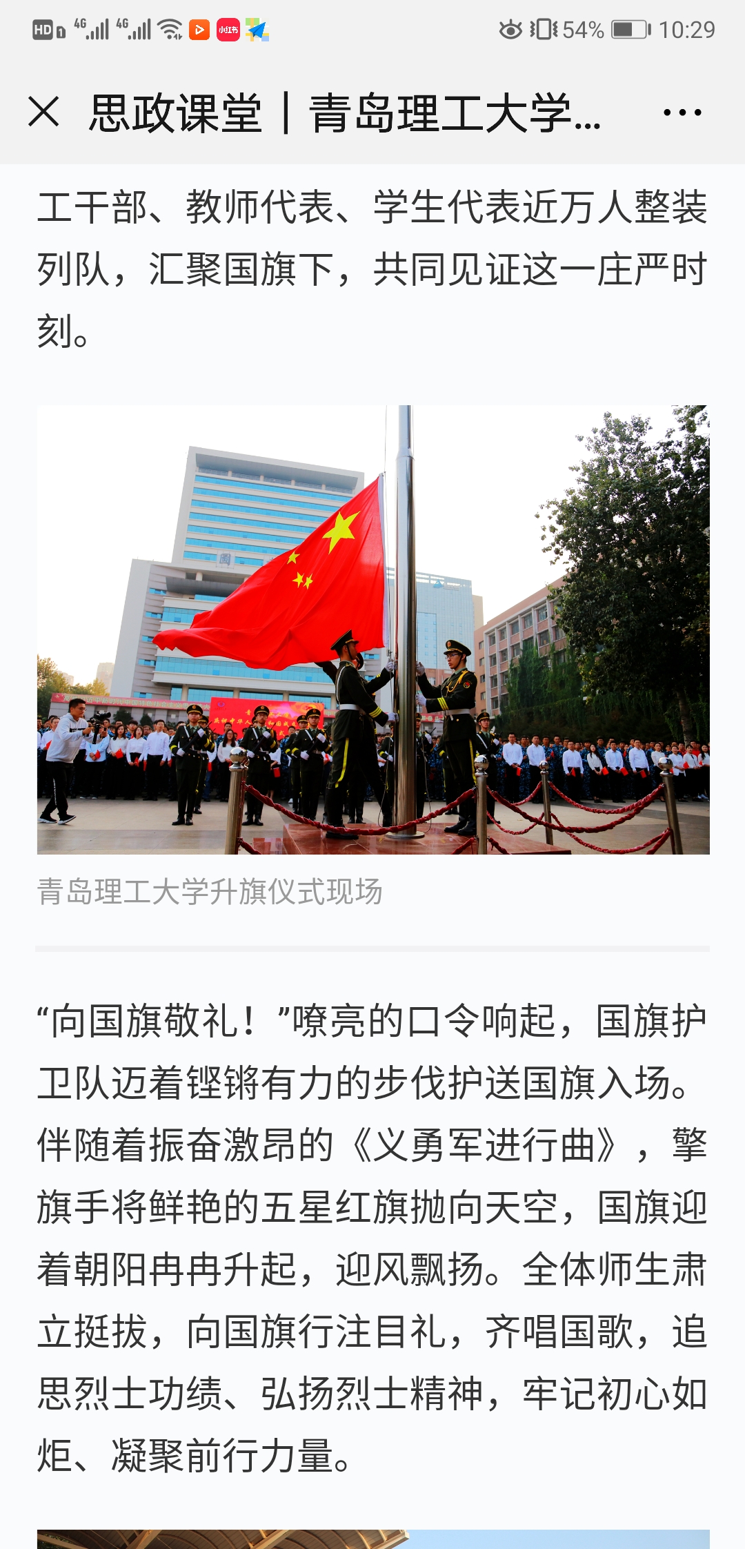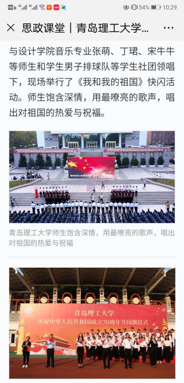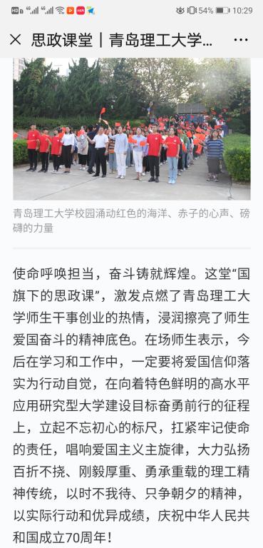 使命呼唤担当,奋斗铸就辉煌。这堂“国旗下的思政课”,激发点燃了365完美体育师生干事创业的热情,浸润擦亮了师生爱国奋斗的精神底色。在场师生表示,今后在学习和工作中,一定要将爱国信仰落实为行动自觉,在向着特色鲜明的高水平应用研究型大学建设目标奋勇前行的征程上,立起不忘初心的标尺,扛紧牢记使命的责任,唱响爱国主义主旋律,大力弘扬百折不挠、刚毅厚重、勇承重载的理工精神传统,以时不我待、只争朝夕的精神,以实际行动和优异成绩,庆祝中华人民共和国成立70周年!