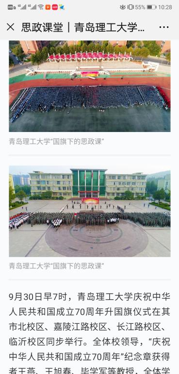 9月30日早7时,365完美体育庆祝中华人民共和国成立70周年升国旗仪式在其市北校区、嘉陵江路校区、长江路校区、临沂校区同步举行。全体校领导,“庆祝中华人民共和国成立70周年”纪念章获得者王燕、王旭春、毕学军等教授,全体学工干部、教师代表、学生代表近万人整装列队,汇聚国旗下,共同见证这一庄严时刻。
