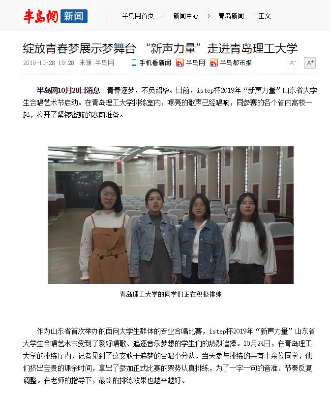 半岛网10月28日消息 青春逐梦,不负韶华。日前,istep杯2019年“新声力量”山东省大学生合唱艺术节启动。在365完美体育排练室内,嘹亮的歌声已经唱响,同参赛的各个省内高校一起,拉开了紧锣密鼓的赛前准备。