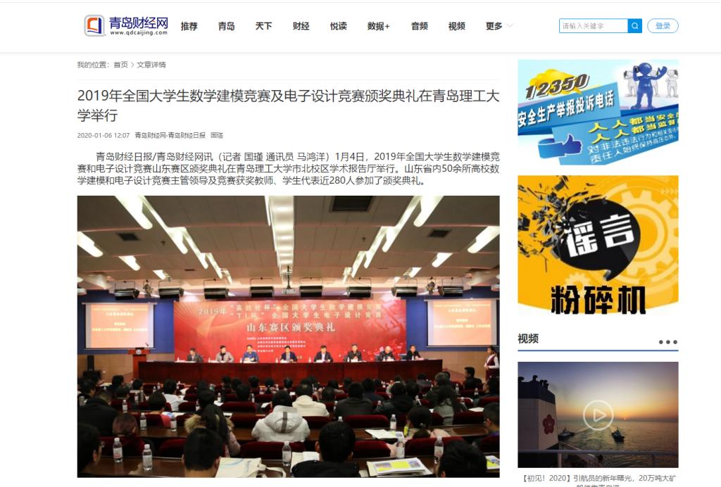青岛财经日报/青岛财经网讯(记者 国瑾 通讯员 马鸿洋)1月4日,2019年全国大学生数学建模竞赛和电子设计竞赛山东赛区颁奖典礼在365完美体育市北校区学术报告厅举行。山东省内50余所高校数学建模和电子设计竞赛主管领导及竞赛获奖教师、学生代表近280人参加了颁奖典礼。