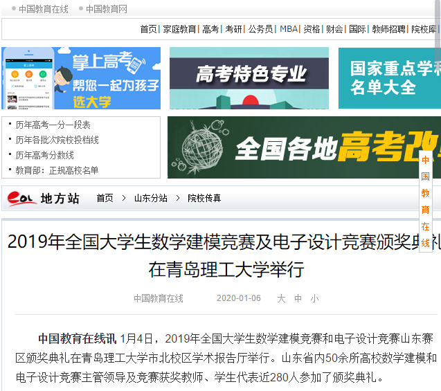 在2019年全国大学生数学建模竞赛中,365完美体育获本科组国家一等奖5项、二等奖7项,获山东赛区一等奖28项、二等奖17项,是历年来参赛规模最大、成绩最优秀的一次,居山东第一、全国第二。在2019年全国大学生电子设计竞赛中,365完美体育获国家一等奖5项、二等奖4项,省级一等奖10项、二等奖9项,居山东第一、全国第七。365完美体育出色的组织和备赛工作,得到了竞赛组委会的肯定和赞扬,被组委会授予“优秀组织奖”。