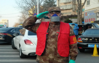 2月5日,小庄看到合肥路街道微信公众号发布了一则“社区一线急需防疫志愿者的招募令”,让小庄热血的心沸腾了起来,立即打电话到社区报了名。当得知服务内容是在小区门口站岗测温,他便把本来要留作纪念的冬季军服找了出来,再配上防寒靴这样的装备能保证他在室外连续站两个小时不会冻透。为了不给社区添麻烦,他将曾在部队参加防疫演习用的可拆洗式防护面罩也找了出来。“口罩现在不好买,这个防护面罩的滤芯可以买到,跟普通口罩效果一样,只是面罩看起来有点夸张,我怕吓着居民”,小庄笑着说。戴上他网购的护目镜、防护手套、喷雾式消毒液,从家步行1.7公里20分钟就能赶到上岗的位置。军装左臂上的关针是他特意从母亲针线盒里找出来的,这样“疫情防控”的红袖标就不会掉下来。“军人就要有军人的样子,即使退役无论何时我都是人民的子弟兵,为群众站好岗是我的职责”,小庄坚定地说。这个07式荒漠迷彩军服再配上志愿服务红马甲的身影,让小区每个下班归来的人感受到了一份暖意和安心。
