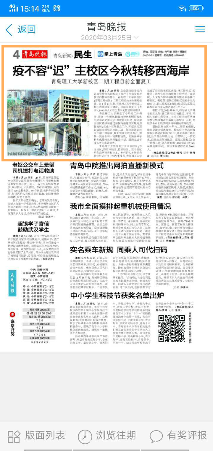 青岛晚报:“疫”不容“迟”主校区今秋转移西海岸