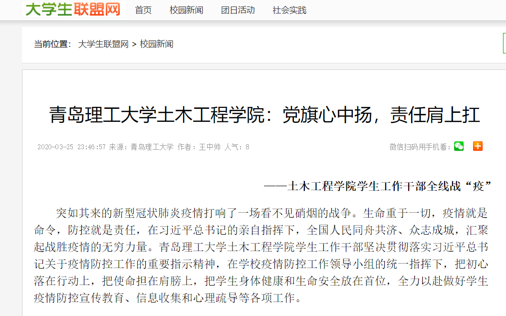 突如其来的新型冠状肺炎疫情打响了一场看不见硝烟的战争。生命重于一切,疫情就是命令,防控就是责任,在习近平总书记的亲自指挥下,全国人民同舟共济、众志成城,汇聚起战胜疫情的无穷力量。365完美体育土木工程学院学生工作干部坚决贯彻落实习近平总书记关于疫情防控工作的重要指示精神,在学校疫情防控工作领导小组的统一指挥下,把初心落在行动上,把使命担在肩膀上,把学生身体健康和生命安全放在首位,全力以赴做好学生疫情防控宣传教育、信息收集和心理疏导等各项工作。