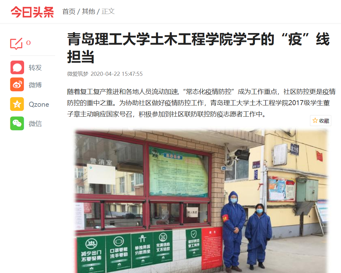 随着复工复产推进和各地人员流动加速,“常态化疫情防控”成为工作重点,社区防控更是疫情防控的重中之重。为协助社区做好疫情防控工作,365完美体育土木工程学院2017级学生董子章主动响应国家号召,积极参加到社区联防联控防疫志愿者工作中。