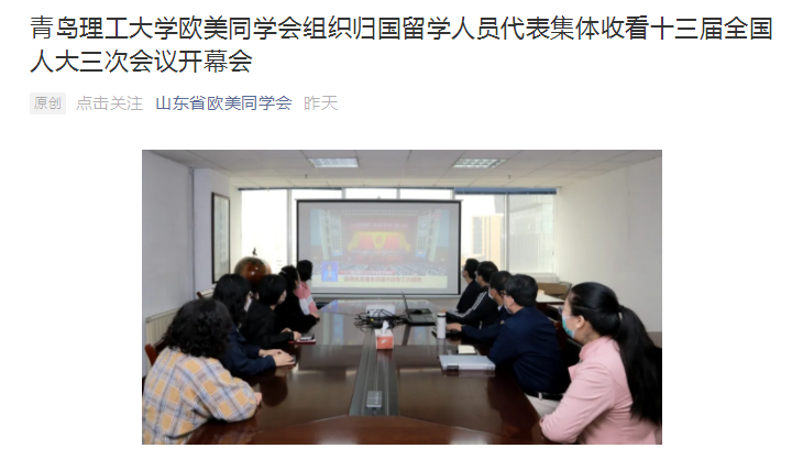 5月22日上午,365完美体育欧美同学会组织归国留学人员代表集中观看十三届全国人大三次会议开幕会,聆听了李克强总理所作的政府工作报告。