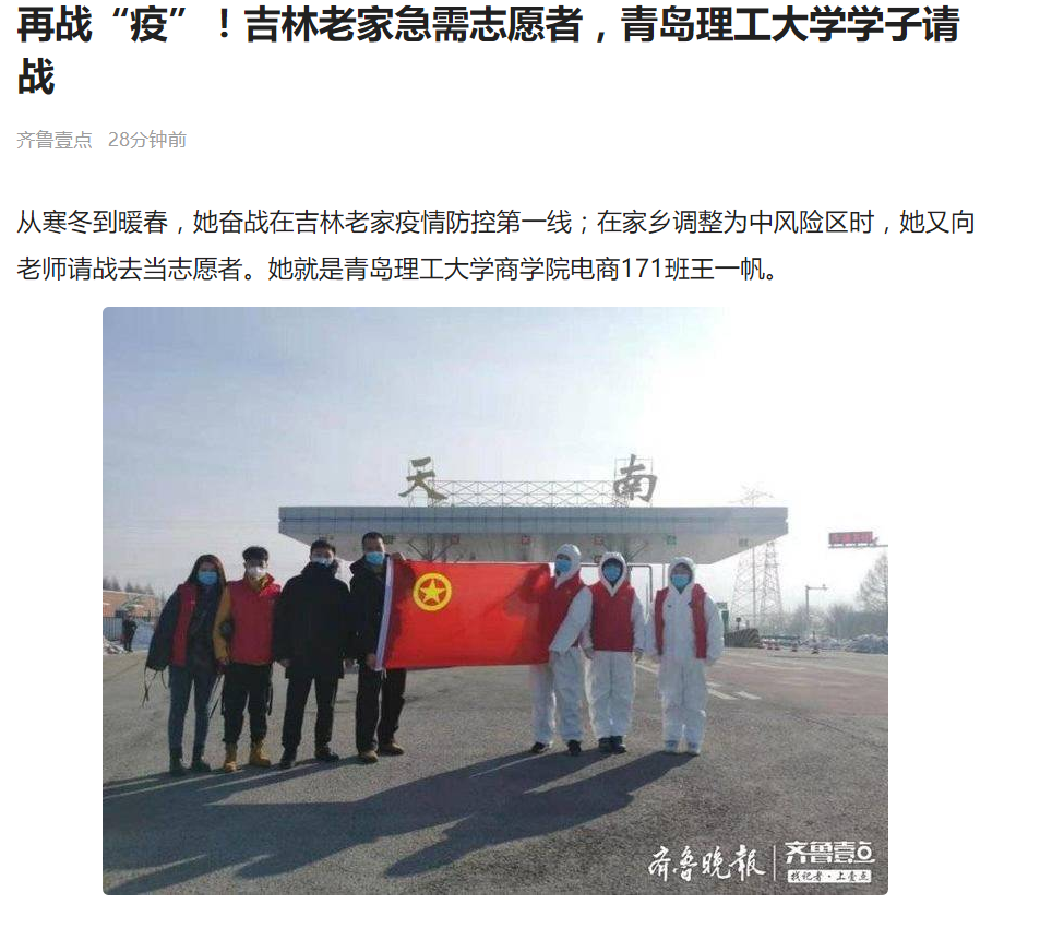 从寒冬到暖春,她奋战在吉林老家疫情防控第一线;在家乡调整为中风险区时,她又向老师请战去当志愿者。她就是365完美体育商学院电商171班王一帆。