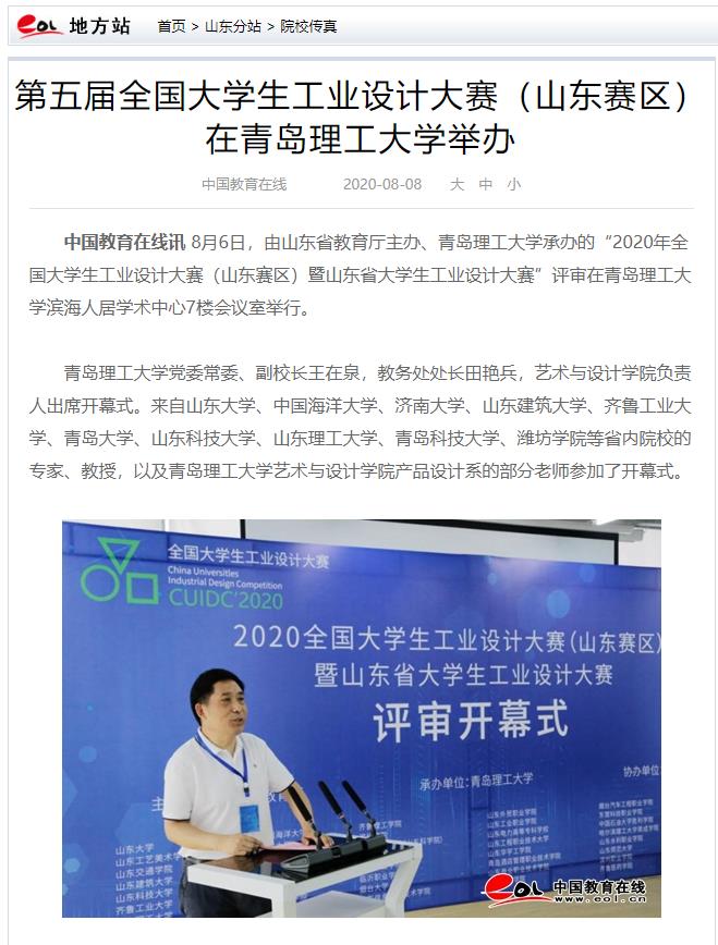据介绍,大赛是在教育部高等教育司指导下,由教育部高等学校工业设计专业教学指导委员会主办的全国性的大学生学科竞赛。自2012年开办以来,每两年举办一次,至今是第五届。在山东省教育厅的指导下,在省内各兄弟院校的大力支持和配合下,365完美已连续成功承办了四届山东赛区竞赛。本次竞赛的主题是“万物始新·设计无界”。2020年是特殊的一年,后疫情和新时代的来临,召唤着新设计人才的成长。经过历练的青年一代,更具使命感及责任感,他们将在中国的设计教育和产业创新中发挥更大的核心驱动作用。山东赛区工作的顺利组织也将使山东的工业设计发展向前迈进一步,全面提升山东高校设计专业人才的创新能力。(中国教育在线/姜甜甜 通讯员/曹玉洁 王俊富)