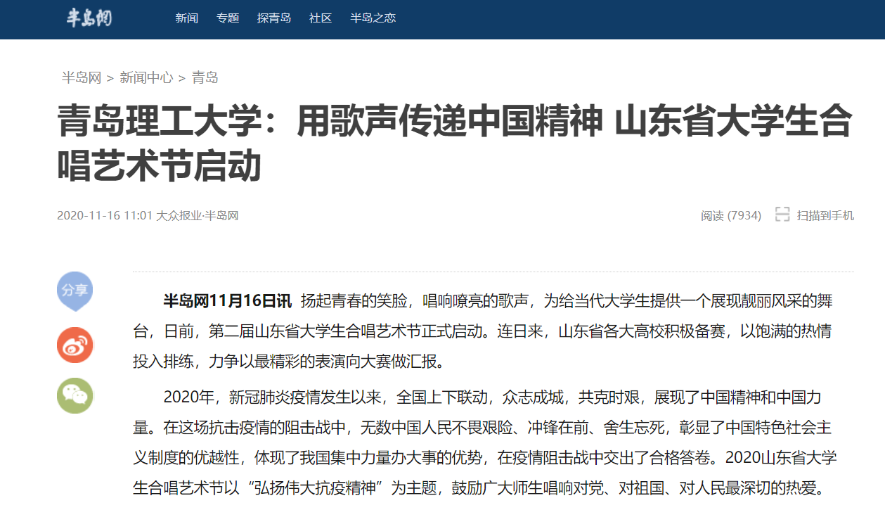 在疫情防控常态化的形势下,今年山东省大学生合唱艺术节相较去年有了新的变化,创新性地将评审及展示环节搬到“云上”,感兴趣的市民可通过山东大学生合唱艺术节官网、半岛网等平台进行线上观摩。