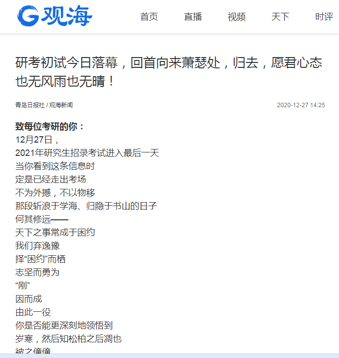 2021年研究生招录考试进入最后一天
