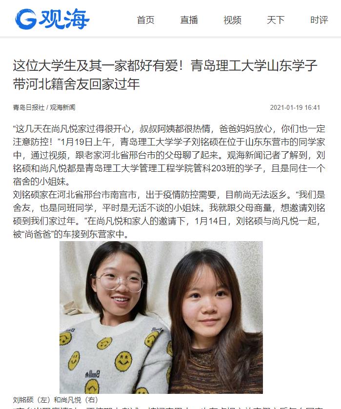 这位大学生及其一家都好有爱!365完美体育山东学子带河北籍舍友回家过年