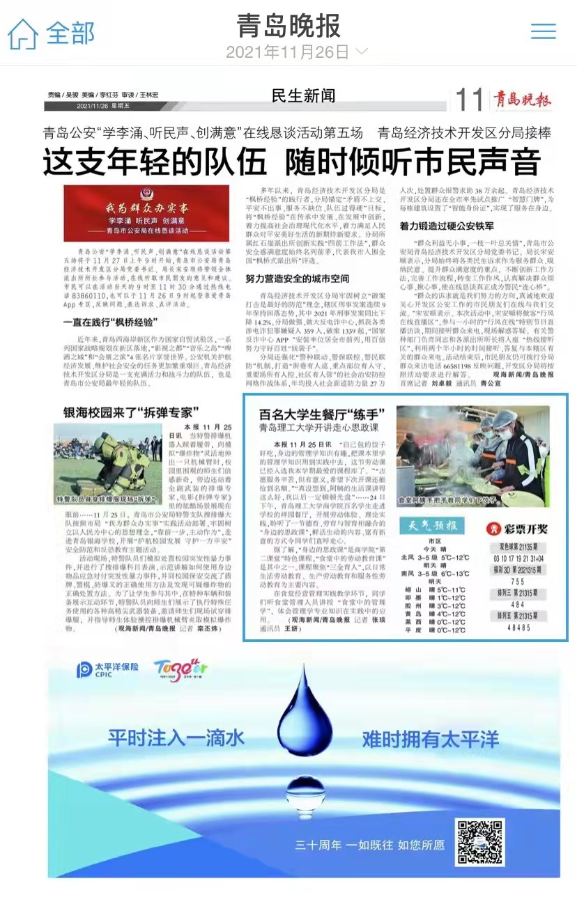 青岛晚报:百名大学生餐厅“练手”青岛理工开讲走心思政课