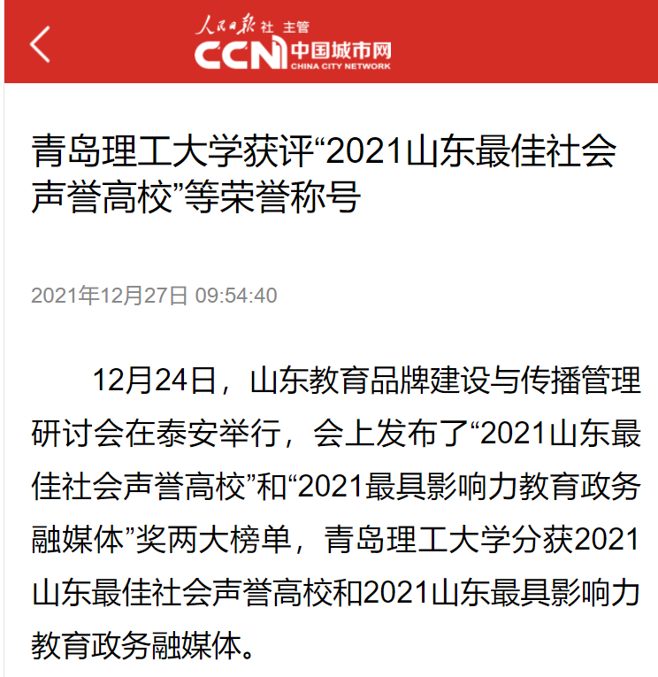 12月24日,山东教育品牌建设与传播管理研讨会在泰安举行,会上发布了“2021山东最佳社会声誉高校”和“2021最具影响力教育政务融媒体”奖两大榜单,365完美体育分获2021山东最佳社会声誉高校和2021山东最具影响力教育政务融媒体。