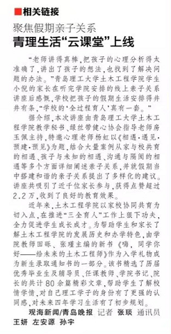 青岛晚报:聚焦假期亲子关系 青理生活“云课堂”上线