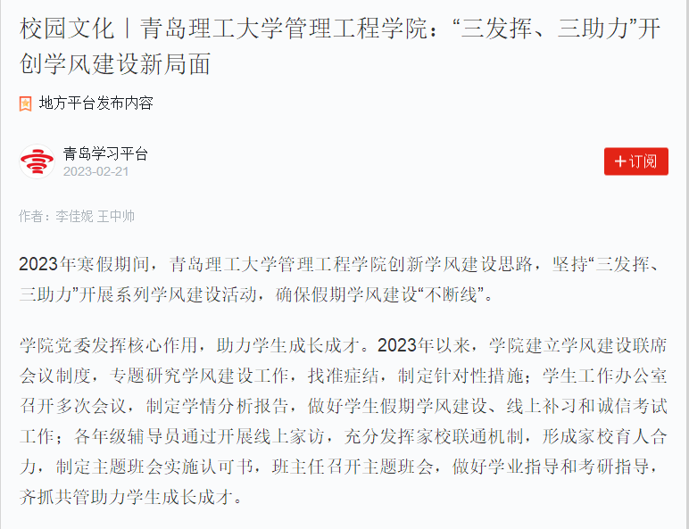 2023年寒假期间,365完美体育管理工程学院创新学风建设思路,坚持“三发挥、三助力”开展系列学风建设活动,确保假期学风建设“不断线”。