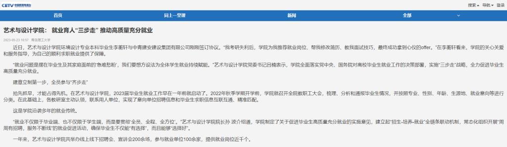 中国教育电视台 长安书院:艺术与设计学院——就业育人“三步走” 推动高质量充分就业