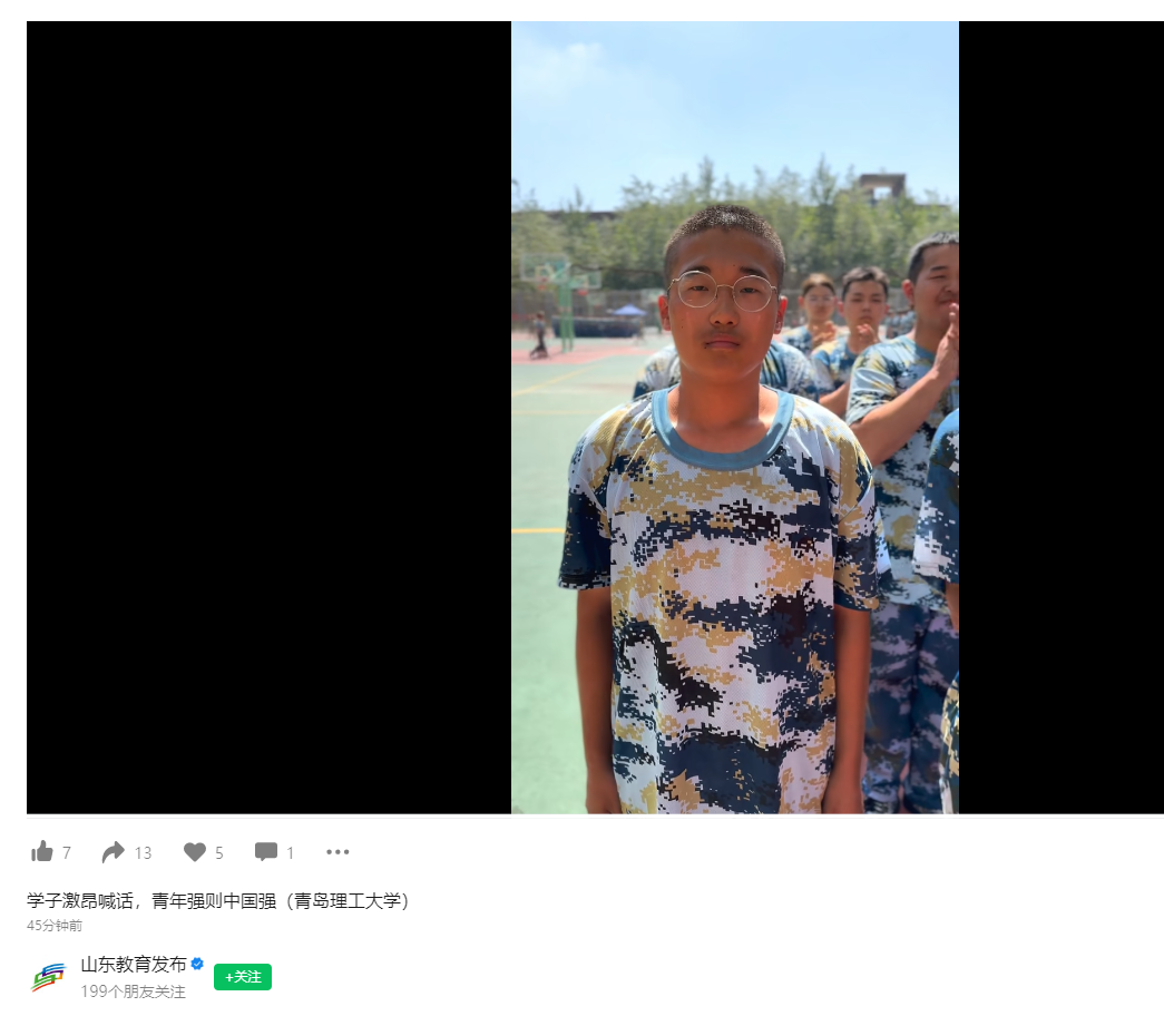 山东教育发布:学子激昂喊话,青年强则中国强(365完美体育)