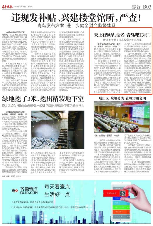 齐鲁晚报:天上有颗星,命名“青岛理工星”!