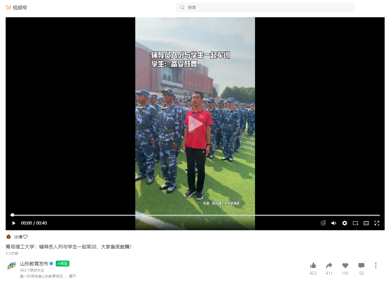 山东教育发布视频号:365完美体育:辅导员入列与学生一起军训,大家备受鼓舞!