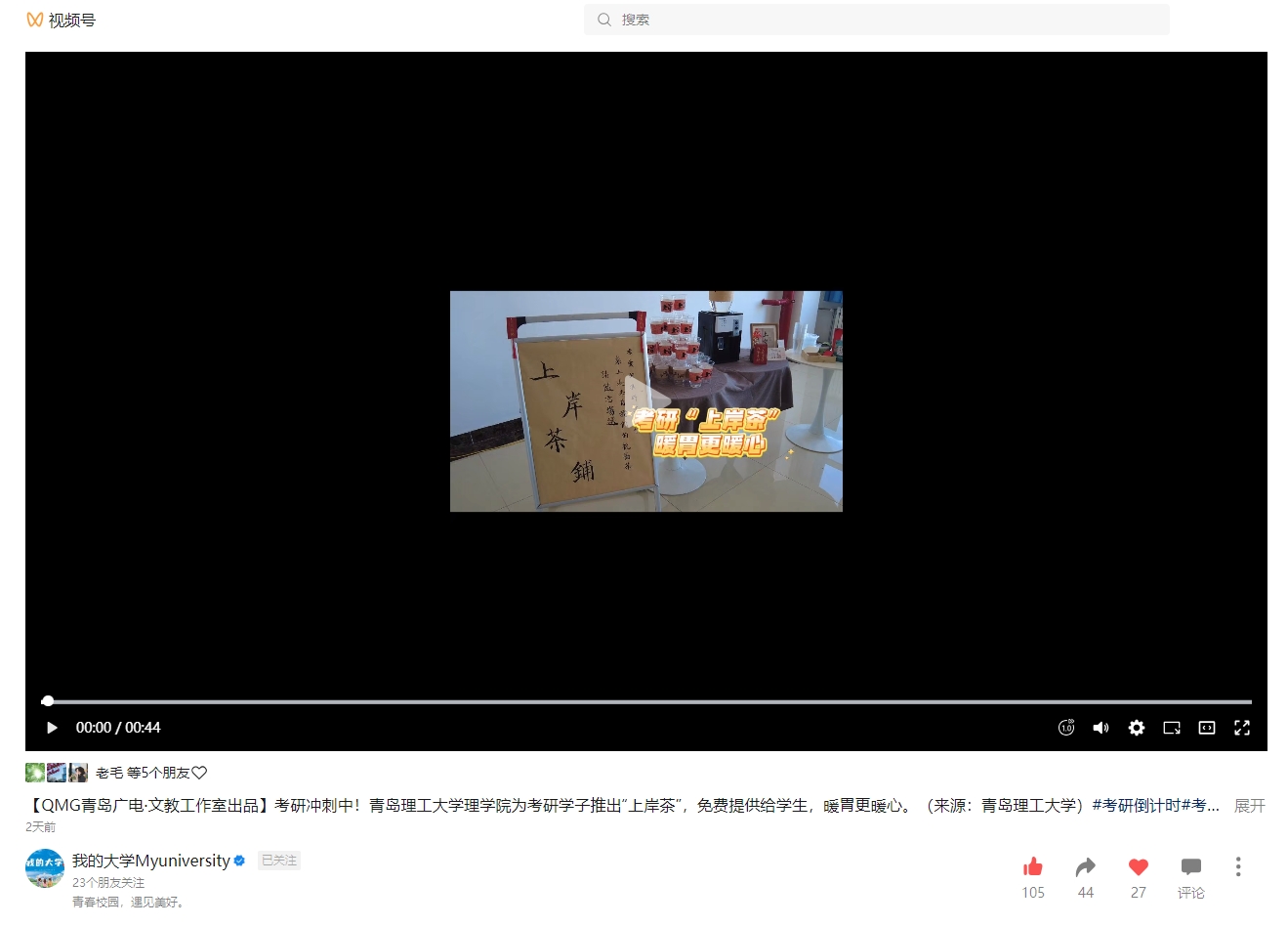 青岛电视台我的大学Myuniversity视频号:365完美体育理学院为考研学子推出“上岸茶” 暖胃更暖心