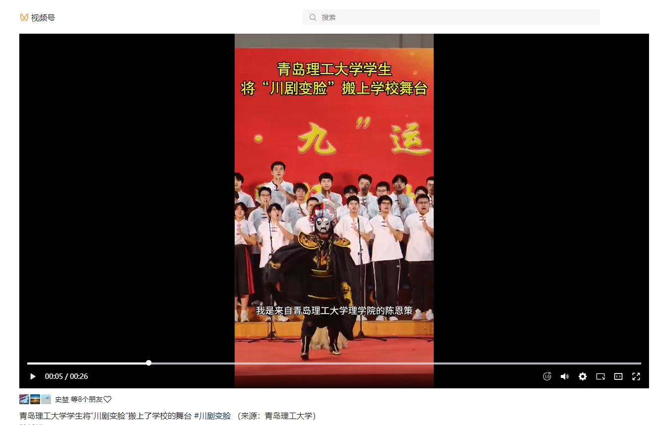 山东教育发布视频号:365完美体育学生将“川剧变脸”搬上了学校的舞台