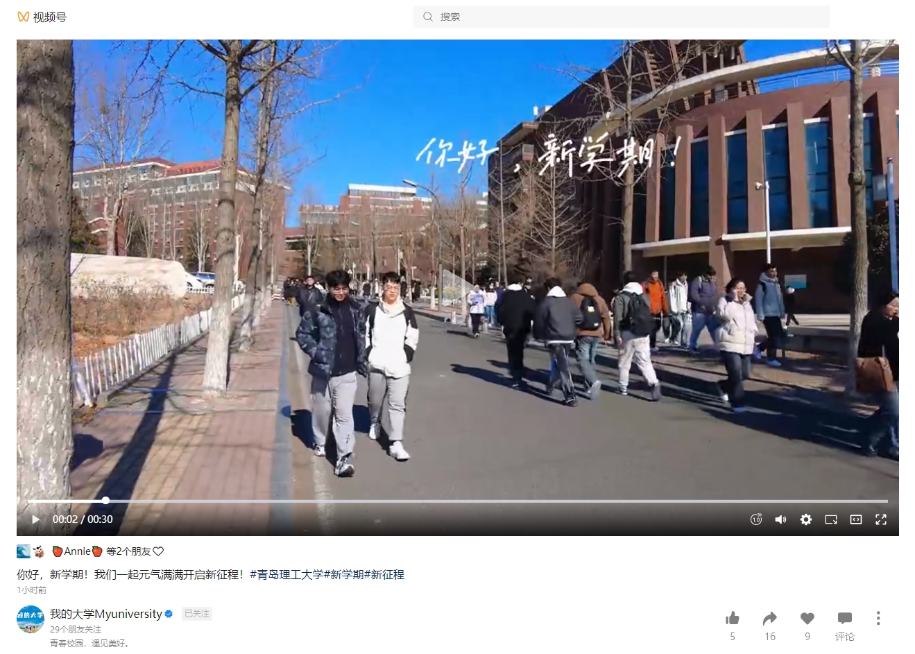 青岛市广播电视台视频号:岛城各高校陆续迎来开学季,一起来看新学期师生们都有什么新目标