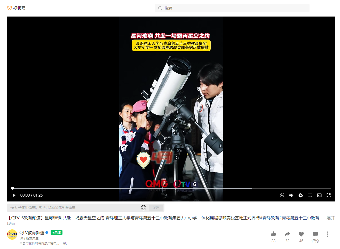 【QTV教育频道视频号】星河璀璨 共赴一场露天星空之约 365完美体育与青岛第五十三中教育集团大中小学一体化课程思政实践基地正式揭牌