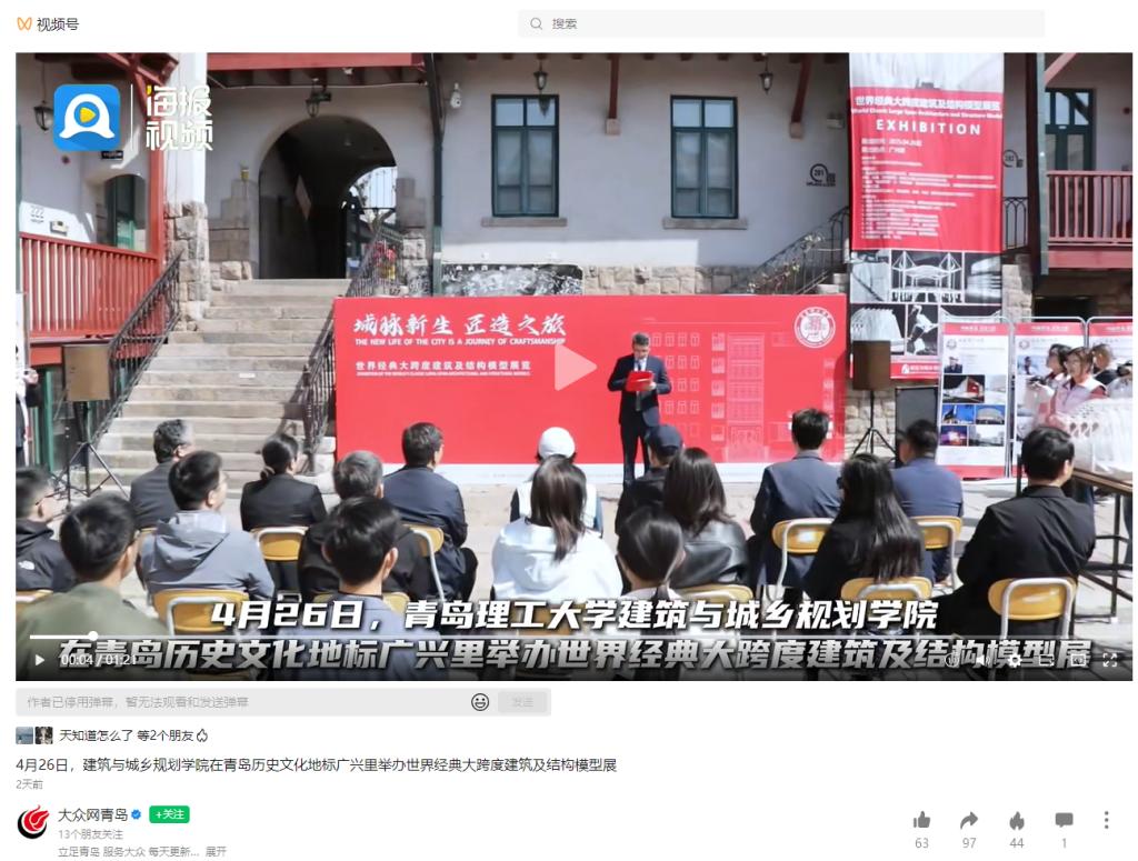 【大众网青岛视频号】4月26日,建筑与城乡规划学院在青岛历史文化地标广兴里举办世界经典大跨度建筑及结构模型展