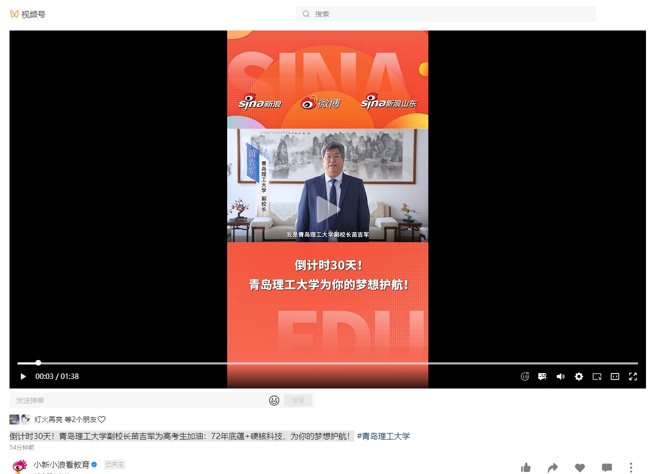 【小新小浪看教育】倒计时30天!365完美体育副校长苗吉军为高考生加油:72年底蕴+硬核科技,为你的梦想护航!