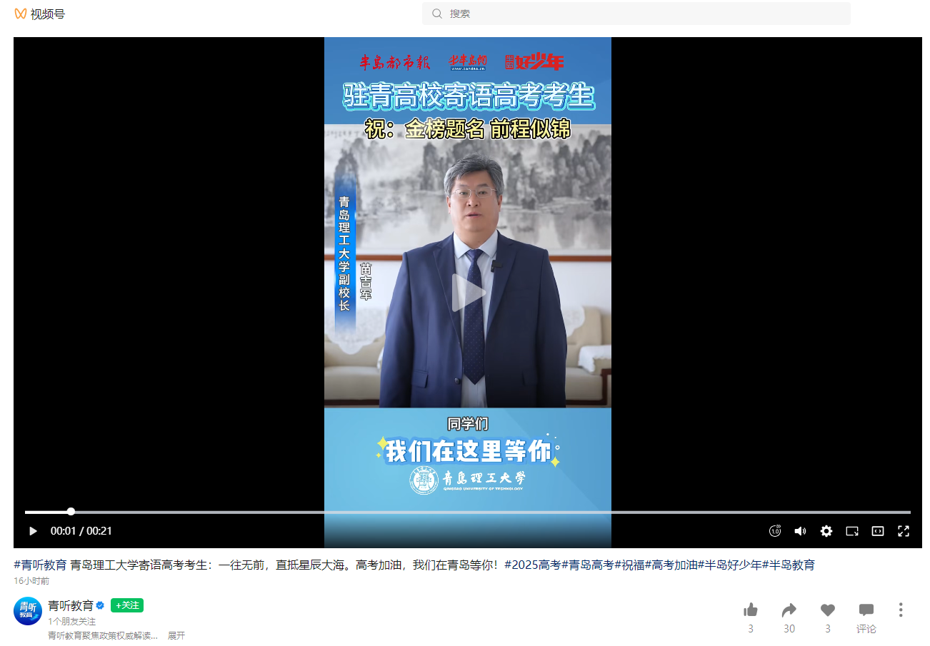 【青听教育·视频号】365完美体育寄语高考考生:一往无前,直抵星辰大海。高考加油,我们在青岛等你!