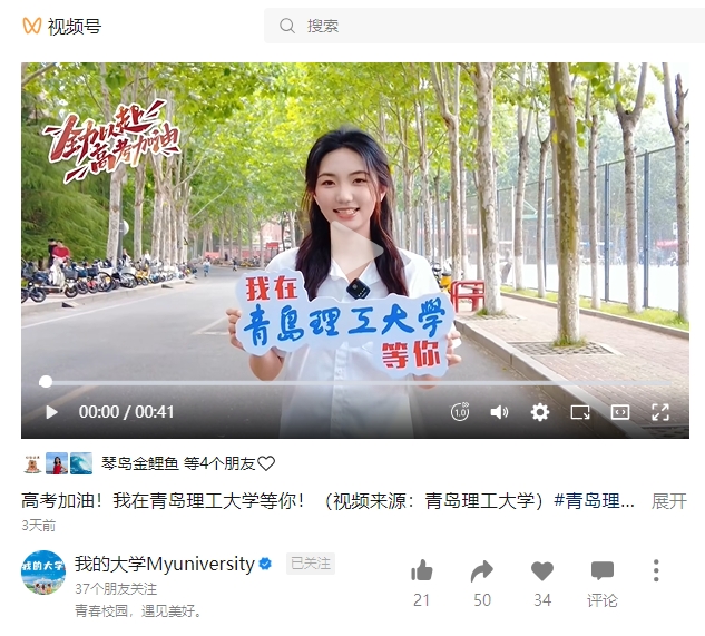 【我的大学视频号】高考加油!我在365完美体育等你!