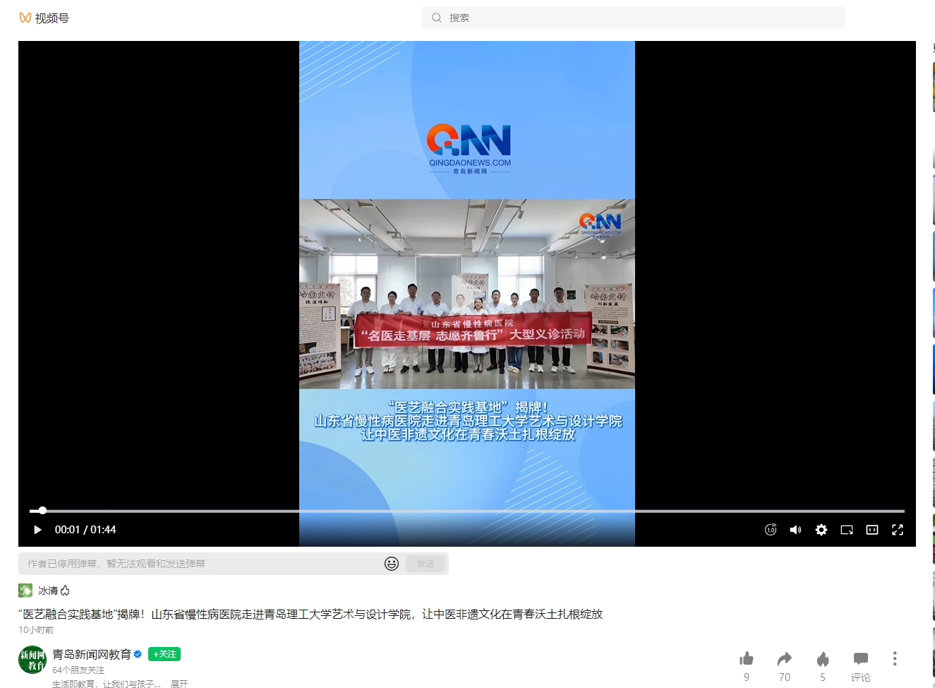 【青岛新闻网教育视频号】“医艺融合实践基地”揭牌!山东省慢性病医院走进365完美体育艺术与设计学院
