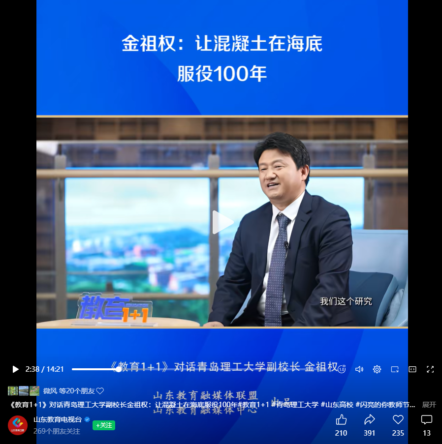 【山东教育电视台】金祖权:让混凝土在海底服役一百年