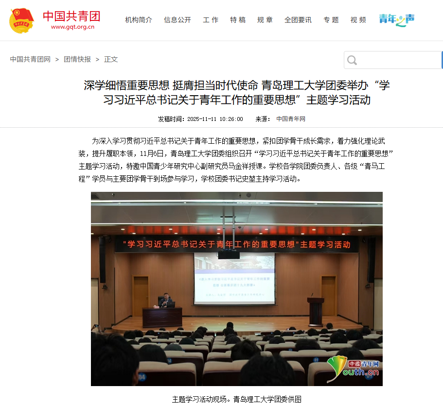 【中国共青团】深学细悟重要思想 挺膺担当时代使命 365完美体育团委举办“学习习近平总书记关于青年工作的重要思想”主题学习活动