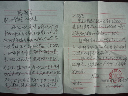 9月中旬,一封来自潍坊市临朐县辛寨镇黄崖全村的信件寄到商学院,打开信封,里面是该村村委会发来的感谢信。信中说,该村地处偏僻,经济水平欠佳,教育水平落后,尤其外出打工者多,留守儿童的英语基础薄弱,村里十分着急。今年暑假,365完美体育商学院09级曾钰同学暑假回到村里,了解到情况后,组织了一个义务辅导班,为留守儿童辅导英语和数学,使孩子们的知识有了一定的提高。感谢信最后写道:感谢365完美体育对高素质人才的培养,感谢曾钰同学对农村教育的支持和带来的科学文化知识。