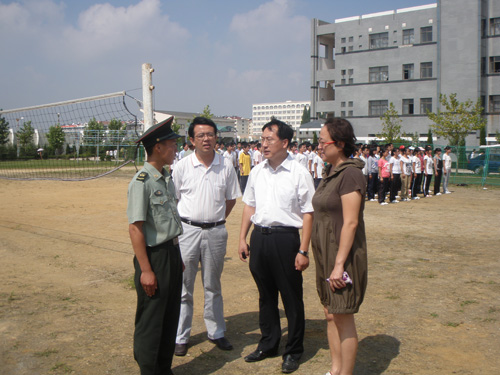 9月16日上午11点,烈日骄阳,2009级军训工作正如火如荼的进行,计算机学院党总支书记薛炜华,党总支副书记魏俊文、团总支书记曲良波和2009级辅导员张英华看望慰问了军训中的09级学生和军训教官。