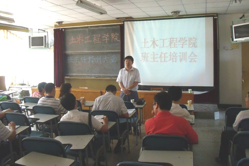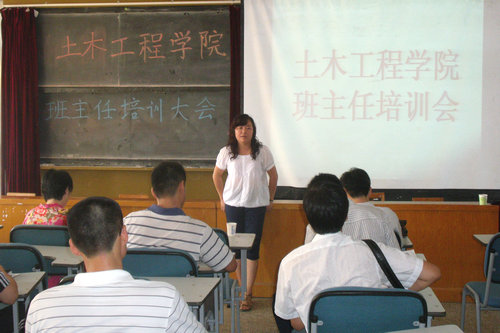 为做好迎接2010级新生入学以及2009级学生入住新校区准备工作,9月15日上午土木工程学院在黄岛校区召开了10级和09级全体班主任培训会,学院党总支书记刘健、副书记宋玲、团总支书记高洁以及相关辅导员参加了培训。