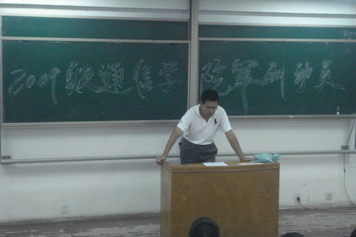 通信学院09级学生军训动员大会于9月10日下午4点在阶梯教室204举行。大会由通信学院团支部书记柳志广的主持,通信学院全体学生参加。