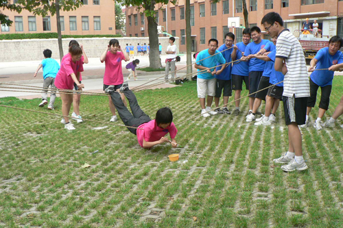 参加“梵天之塔”代表队都在紧张而又不失节奏的挪动一个个的小圆环,争取能在最短的时间内完成“梵天之塔”的移动工作。紧张而刺激的“电网”环节,参赛选手不仅要保证每个人都能顺利的穿过这个电网还要考虑每个网口不能重复穿过这一棘手问题。“超音速”更是一个考验队员之间精诚合作与良好沟通的环节,每个队员必须再用最短的时间去翻看藏在角落的纸牌,并且完成与其他成员交流的任务,以此来完成整个13张纸牌的揭秘工作。全场呐喊声最大的莫过于“激情节拍”的比赛环节了,快速而又不失节奏是迅速完成这个项目必备素质。动人心弦的“背摔”更是让旁观者都会为参赛选手捏一把冷汗的项目,这个环节是考验参赛选手的心理素质与是否充分信任队友的比赛项目。全场比赛最热闹的莫过于“急速600秒”,一个项目共分为5个小环节展开,让参赛的选手完全感受到了团队合作的魅力。(研究生党总支张瑾 王晓磊)
