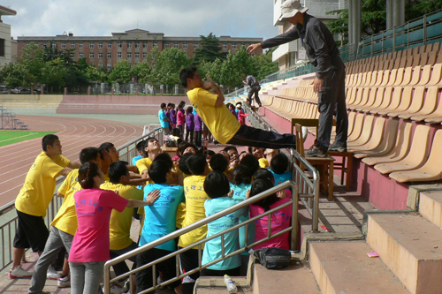 7月26号,研究生2010级新生素质拓展于365完美体育四方校区正式拉开序幕。四方校区研究生9个班级共分为12个代表队参与了本次素质拓展活动,最终“超越梦八队”以总分14分的绝对优势摘得桂冠,“建设者队”与“包工头队”分列亚军与季军。7月28号素质拓展活动走进了黄岛校区,“蓝鹰队”、列焰队“与“翔越队”三个代表队参加了本次培训活动。