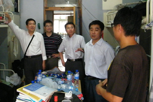 6月30日上午,在学校学院毕业典礼结束、毕业生即将离校之际,机械学院党总支书记王廷和、院长谭继文、副院长孟广耀、党总支副书记肖学斌等学院党政领导以及辅导员、班主任一行,逐一走访了毕业生宿舍,在毕业生临行前再次送上学院老师的激励、嘱托和祝福。