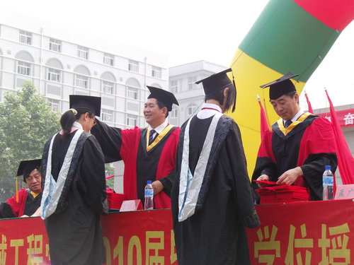 6月30日上午,继学校隆重而庄严的毕业典礼后,机械学院2010届毕业生学位授予仪式在科技广场举行。学院党政领导、教师代表和全体硕士毕业生、本科毕业生出席仪式。仪式由学院党总支副书记肖学斌主持。