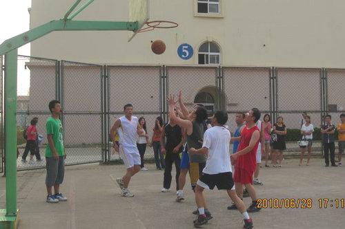 在毕业生离校之际,为了增强了毕业生之间以及师生之间的沟通和交流,为精彩的大学生活画上完美的句号,经贸学院于6月28日下午在北院篮球场举行了2010届毕业生师生篮球赛。经贸学院副院长宋荣兴、党总支副书记王粲、团总支书记王振等老师参加了本次比赛。