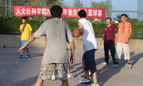 在毕业生即将离校之际,为了增进师生感情,同时也为精彩的大学生活划上完美的句号,6月25日下午,人文学院在篮球场举行了2010届毕业生师生篮球赛。