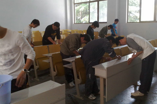 5月14日,由土木学院团总支主办、楼宇管理中心协办,2008级全体团员参与的“清洁课桌 文明教室”活动圆满结束。