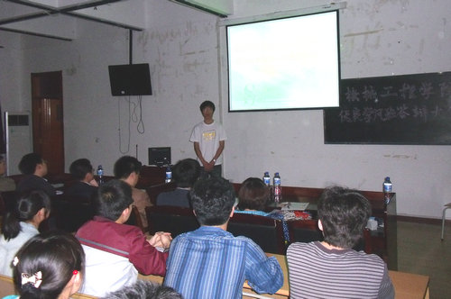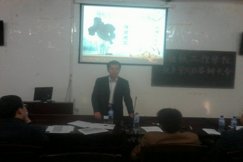 5月12日,机械学院在3教416室召开09—10学年第一学期优良学风班答辩大会。机械学院教学副院长孟广耀、党总支副书记肖学斌,以及校学生处吕鹏老师、组织部徐佐军老师、教务处李伟老师、党委宣传部曹玉洁老师、机械学院团总支贺治成老师出席答辩大会并担任评委。
