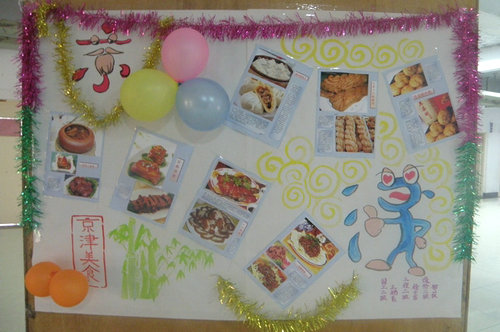 此次图片展展示了我国各个省份的著名美食,展报的设计独特新颖,美观大方。图片上的美食精美无比,令人垂涎欲滴。丰富的相关资料更是详尽地向同学介绍了各地美食的所属菜系、典故、味道及营养价值。例如著名的浙江东坡肉,清太祖努尔哈赤时流传下来的满族八大碗,也有闻名遐迩的北京烤鸭,名扬四海的“天津三绝”:十八街麻花、狗不理包子、耳朵眼炸糕。还有“中华第一面”之称的甘肃拉面和“天下第一鸡”的山东德州扒鸡,内蒙古的烤羊腿更是让人眼未见其物,香味已扑鼻,而陕西芥面饴饹对调节血糖和健康更是大有裨益。各地美食各具特色,无不让人欲一尝为快。