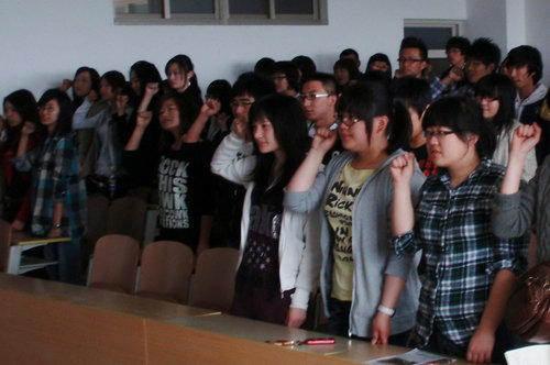 5月4日中午,艺术学院学生会及08、09各班团支部成员150余名团员在2教207举行了“践行青春誓言,重温入团誓词”活动。
