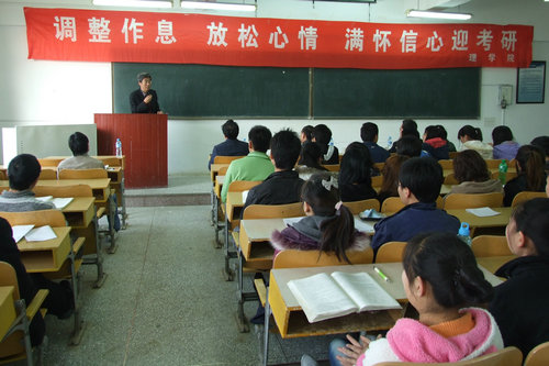 理学院今年考研情况成绩总体不错,特别是数学专业,66名毕业生有22人考取了研究生,考研录取率达到了33.3%。但我们也应看到这其中还存在一定的问题,有11名同学考研分数在300分以上,但没有被录取,究其原因,主要包括:1、对复试准备不充分;2、专业选择跨度太大;3、选择学校定位不当;4、复试期间与导师的交流不够等。这要引起07级考研同学的注意。理学院的考研状元数学专业的陈冬梅同学,考取中国人民大学的物理专业的丁相堃同学,考取东北大学的罗晶晶同学,就自己的考研经历分别从考研学校及专业的选择、考研计划的制定、课程的复习、考研资源的利用等方面给同学们做了经验交流。